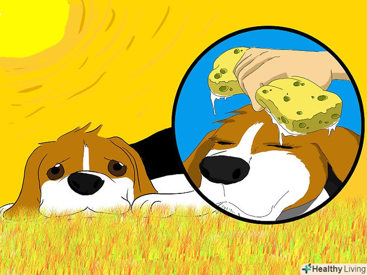 - Якщо ви підозрюєте у собаки тепловий удар, перейдіть в прохолодне місце, дайте собаці трохи води і зволожите її прохолодною (не холодною) водою. Занадто різка зміна температури через обливання холодною водою може бути небезпечно. [16]