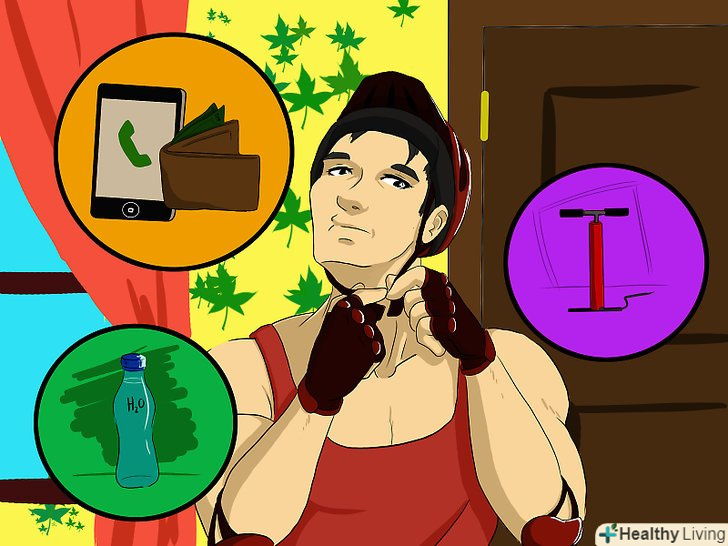 Придбайте власне спорядження. першим кроком до забезпечення безпеки собаки при вигулі за допомогою їзди на велосипеді має бути забезпечення власної безпеки. Вам буде потрібно шолом і щось, що зробить вас добре видимими для водіїв транспортних засобів, включаючи яскравий одяг і світловідбивачі для велосипеда. Крім того, вам необхідно мати при собі воду для себе і собаки. Також будуть потрібні додаткові речі, які можуть знадобитися в екстреному випадку.- На екстрений випадок у вас при собі повинен бути стільниковий телефон, гроші, документи, Запасна камера для велосипеда і насос.