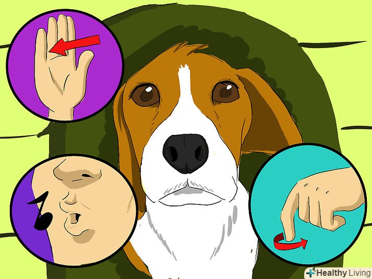 Навчіть собаку важливим командам. Ваша собака повинна знати такі команди, як "повільніше", "стій", "поворот" і "фу", щоб її можна було спокійно контролювати під час їзди на велосипеді. [9] Давайте собаці частування, коли вона успішно виконує ваші команди.- При навчанні собаки зазначеним командам важливо використовувати унікальні фрази. Ваша собака може почути слова "повільніше" або "стій" не тільки при їзді на велосипеді, що може заплутати її. Застосування для цих команд унікального незвичайного звуку або слова дозволить гарантувати точне їх розуміння вихованцем. [10]