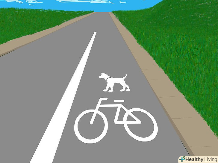 Виберіть місце для прогулянок. Вам необхідно бути дуже обережними у виборі місця для катання на велосипеді разом з собакою. Спроба їздити по занадто складному рельєфу або по дорозі з жвавим рухом транспорту або людей може бути небезпечною. Оптимально кататися по тихих дорогах або спеціально виділеним велосипедним доріжках.- Їзда на велосипеді з собакою може потроїти вашу загальну ширину, що ускладнить вам завдання потрапляння в межі ширини велосипедної доріжки, виділеної біля краю дороги. Враховуйте те, що вашу собаку може бути погано видно, а також її погані знання належної поведінки на дорозі, що в сукупності дуже небезпечно. Однак, якщо у вас неподалік є незавантажена транспортом путівка, на якій встановлено обмеження швидкості руху транспортних засобів і немає різких поворотів, то вона може прекрасно підійти для вигулу собаки на велосипеді. [11]