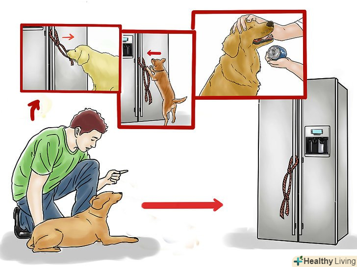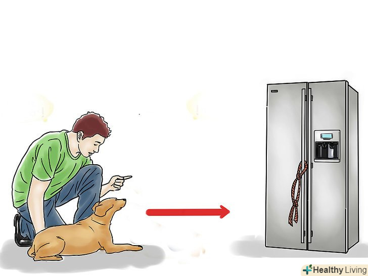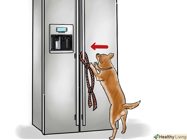 Прив'яжіть мотузку або рушник до холодильника. Якщо у вашої собаки є улюблена іграшка-буксир, це відмінно можна використовувати. Ви також можете прив'язати будь-які ласощі всередину рушника, щоб зробити його більш спокусливим.