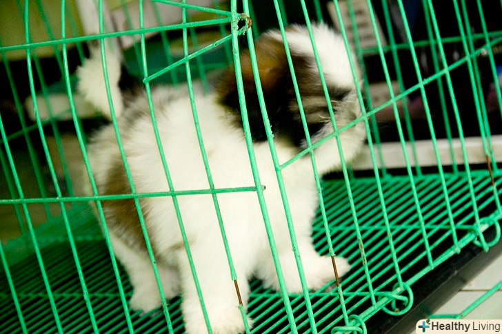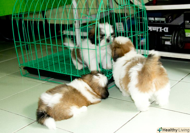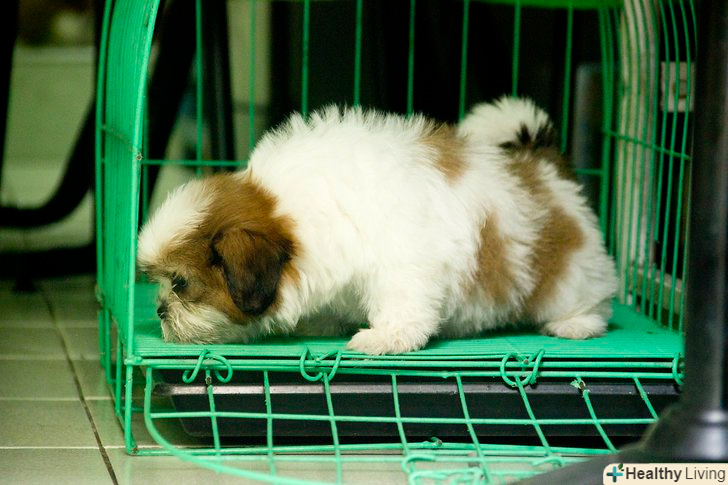Помістіть нову собаку в клітку. поставте клітку посередині кімнати на видимому місці. Клітка повинна бути з металевої решітки з вільною циркуляцією повітря, щоб інші вихованці могли бачити і обнюхувати нового цуценя.