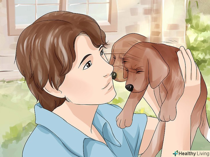 Нехай цуценя беруть на руки і інші люди. Ви ж не хочете, щоб щеня не спілкувався ні з ким, крім вас. Вам потрібно привчити його і до інших членів сім'ї. Крім того, намагайтеся, щоб ваші гості теж спілкувалися з вашим цуценям. Запропонуйте взяти його на пару хвилин на руки, а потім опустити на підлогу. [9]- Покажіть їм, як можна заспокоїти цуценя, щоб він відчував себе безпечно в людських руках.
