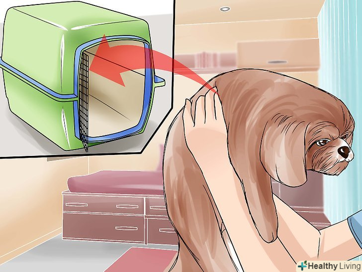 Помістіть цуценя в переноску. після того як ви заповнили всі документи, настав час забрати цуценя додому. Посадіть його в переноску, яку ви привезли з собою, переконайтеся, що він може в ній сидіти або стояти.