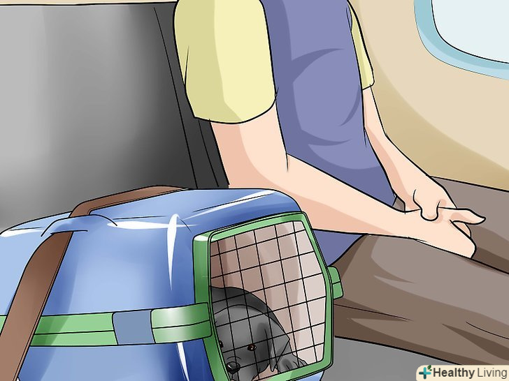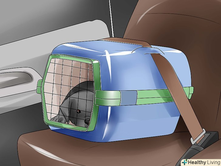 Надійно встановіть перенесення в машині. невелике перенесення найкраще розмістити на підлозі за вашим сидінням, так як ремені безпеки можуть викликати проблеми при аварії. Якщо переноска побільше, то помістіть її на заднє сидіння. Багажне відділення позашляховика - не найбезпечніше місце, оскільки його часто називають "зоною сум'яття" під час аварії. Мається на увазі, що виробники розраховують, що під час аварії ця частина автомобіля може бути зім'ята заради захисту пасажирів. [18]