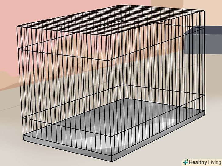 Зробіть собачий будиночок або вольєр. організуйте собаці простір, де вона зможе відчути свою територію. Крім того, вольєр корисний при дресируванні собаки. Якщо ви вирішите зробити вольєр, встановіть його до приїзду цуценя в будинок. [23]- Вольєр повинен бути достатньо великим, щоб щеня міг в ньому рости. Коли цуценя виросте, він повинен мати можливість вставати, потягуватися і сидіти в цьому вольєрі. [24]