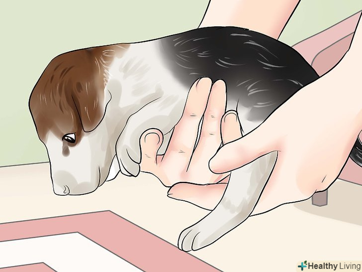 Підніміть цуценя. коли руки займуть правильне положення, підніміть цуценя. Слідкуйте, щоб ваші руки як і раніше підтримували цуценя і спереду, і ззаду. Ви також можете помістити одну руку під круп, а інший обхопити цуценя за тулуб, притиснувши його до себе на рівні грудей. Щільно притискайте цуценя до себе. Не тримайте його на вазі, інакше він може вивернутися з ваших рук. [3]