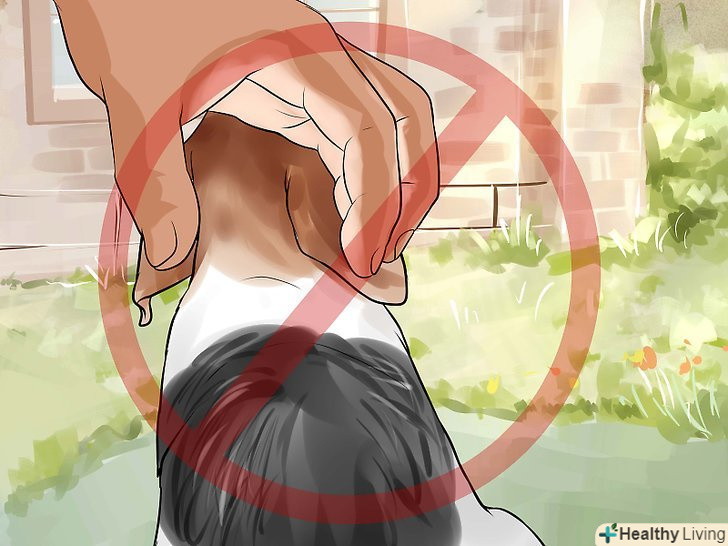 Ніколи не хапайте цуценя за шию або за хвіст. можливо, вам відомо, що не можна хапати цуценя за хвіст. Але не можна брати його і за шию, навіть якщо ви тримаєте його за шкірку. Інакше ви можете травмувати або навіть вбити його. Також не можна піднімати цуценя за ногу, ви можете її пошкодити. [5]