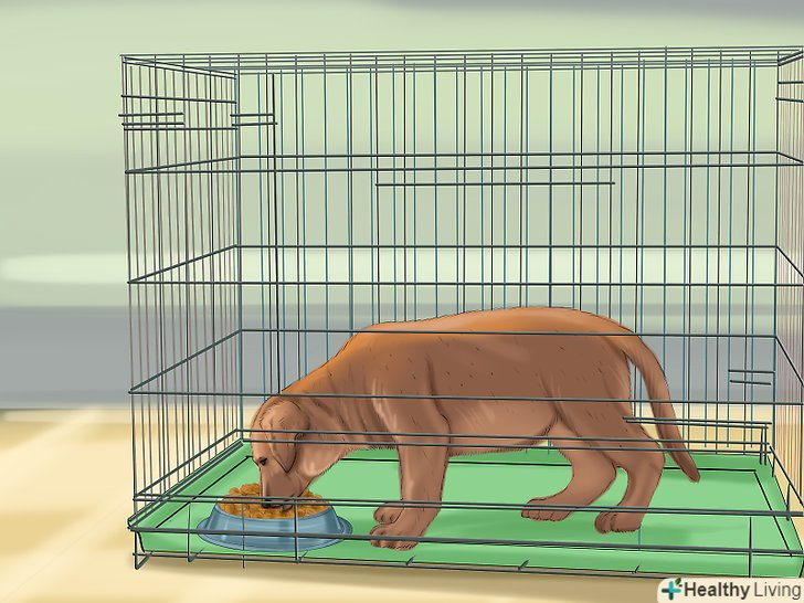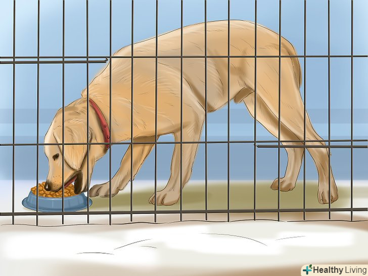 Годуйте собаку в клітці. при годуванні двері повинні бути відкритими. Асоціації з їжею зроблять клітку більш привабливою для собаки. Якщо собака зайде в клітку лише до середини, відсуньте миску до дальньої стінки. Поступово можна буде відсувати миску все далі і далі.