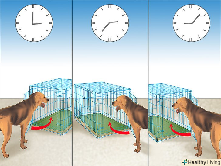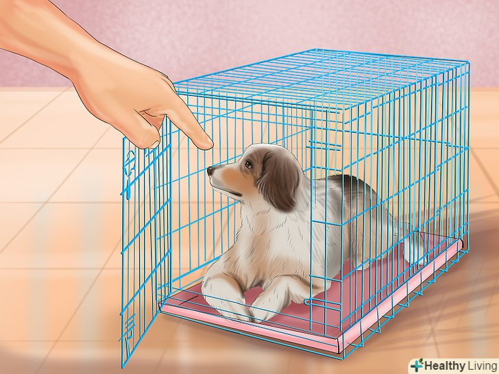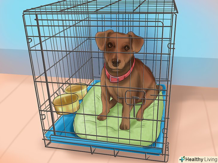 Привчіть собаку до клітки (вище про це написано докладніше). хоча ви не обов'язково привчаєте собаку відчувати себе комфортно в клітці на самоті, вам необхідно, щоб вона сприймала її як власний будинок. Це почуття буде зупиняти цуценя від справляння потреби всередині клітини.