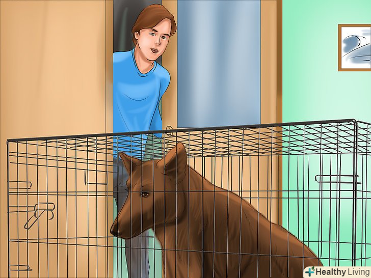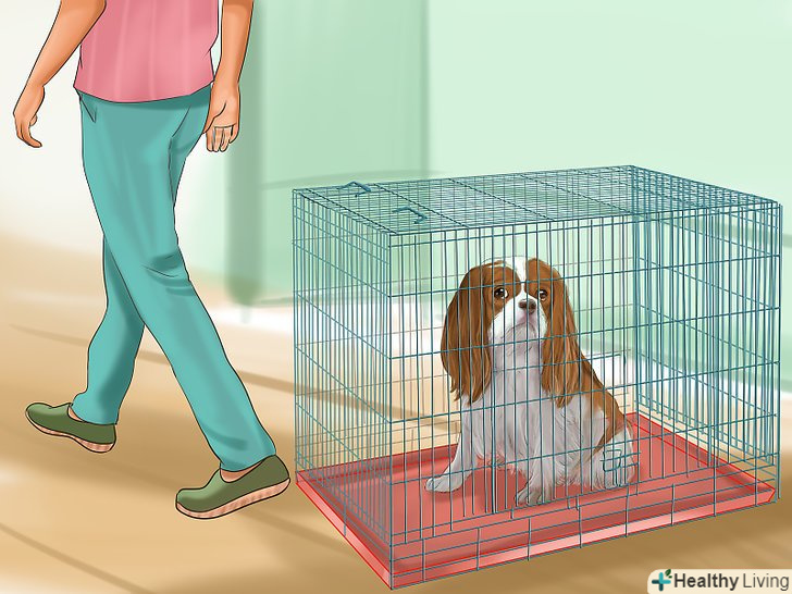 Не робіть великої події зі свого відходу або повернення. Не звертайте уваги на собаку як мінімум протягом п'яти хвилин до відходу і виходьте з дому непомітно. Спокійно випустіть собаку з клітки через кілька хвилин після свого повернення (якщо вона не скиглить). [14]