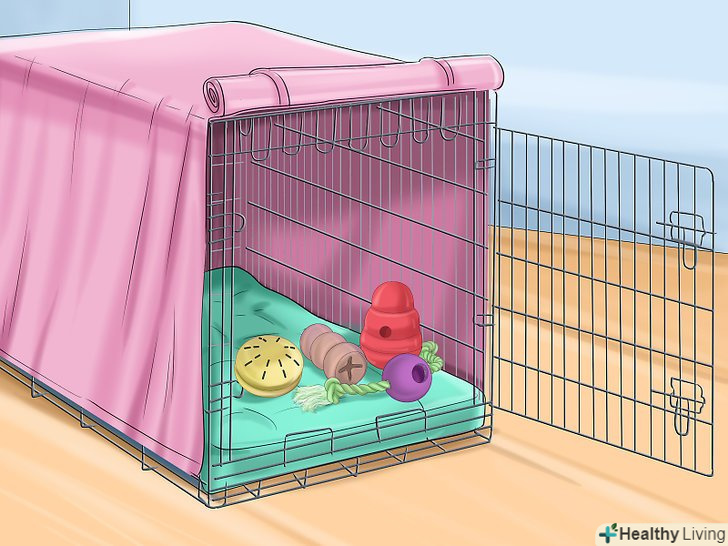 Виберіть місце для клітини. клітина повинна стояти в одному і тому ж місці. Це може бути кімната, де весь час хтось є, але, можливо, собаці захочеться побути далеко від усіх, особливо вночі. [5]
