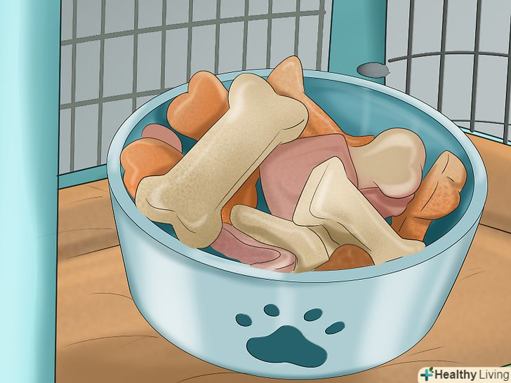 Розкладіть в клітці іграшки. якщо у собаки є улюблена іграшка, покладіть її всередину, щоб собака бачила, що клітка - це приємне місце. [6] Слідкуйте за тим, щоб все, що потрапляло в клітку, було досить міцним, щоб собака не могла погризти і проковтнути іграшку. Ви ж не хочете, щоб шматок іграшки потрапив в кишечник і закупорив його.