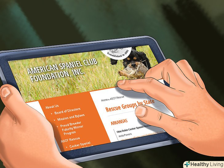 Розгляньте можливість взяти цуценя з притулку. розгляньте можливість взяти собі кокер-спанієля з притулку, замість того щоб купувати його — так ви не тільки врятуєте собачу життя, але і отримаєте вихованця за помітно менші гроші, ніж якби ви його купували у заводчика. Обдзвоніть місцеві притулки і дізнайтеся, чи немає у них в наявності кокер-спанієлів. Можливо, контактні дані притулків вам підкажуть в місцевій у ветеринарній клініці.- Також можна спробувати взяти собаку "В ДОБРІ руки" по оголошенню.