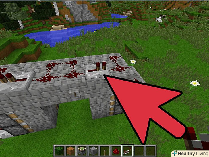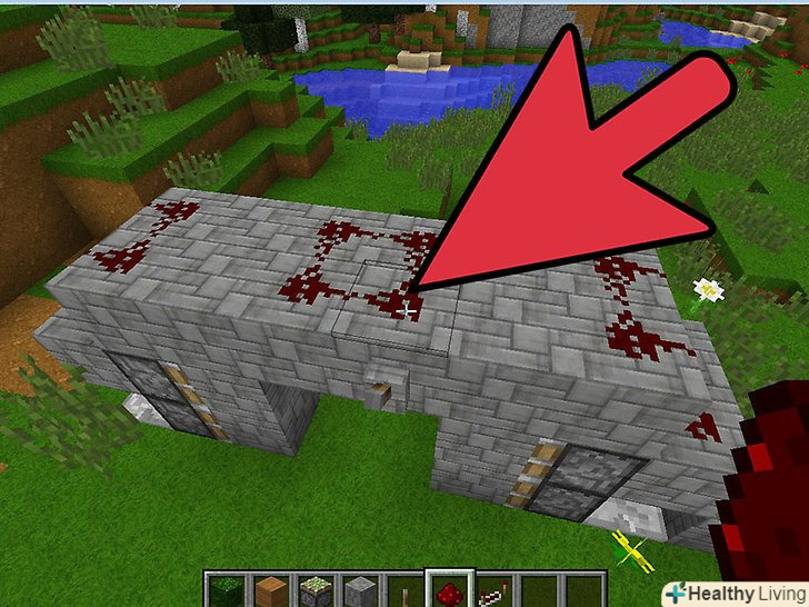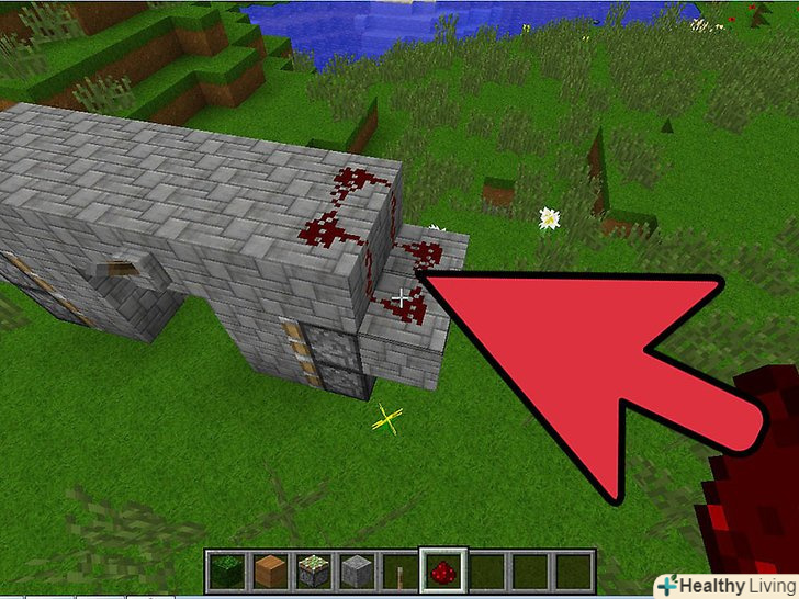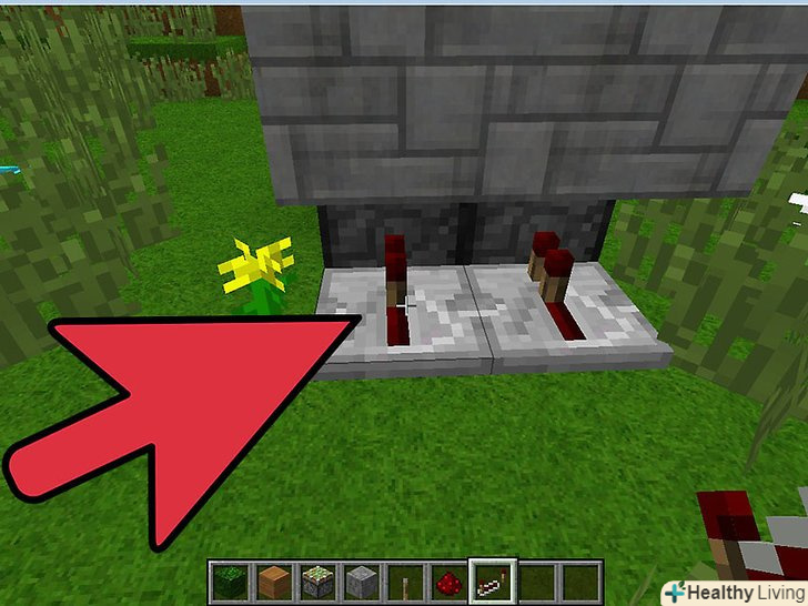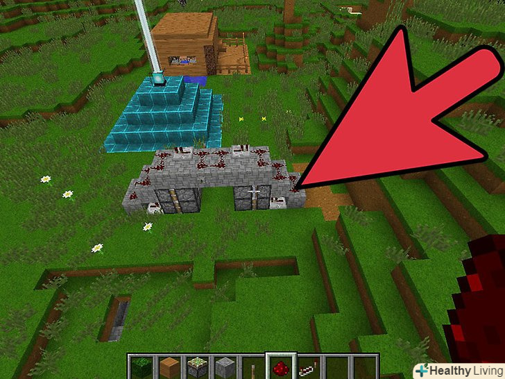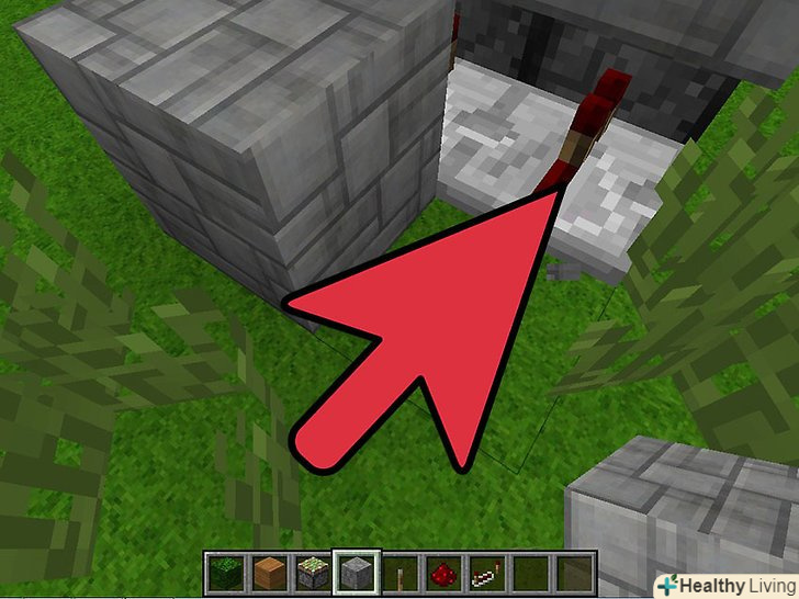 Підключіть провід з червоного каменю до нижнього блоку знаходиться ззаду нижнього пістона.