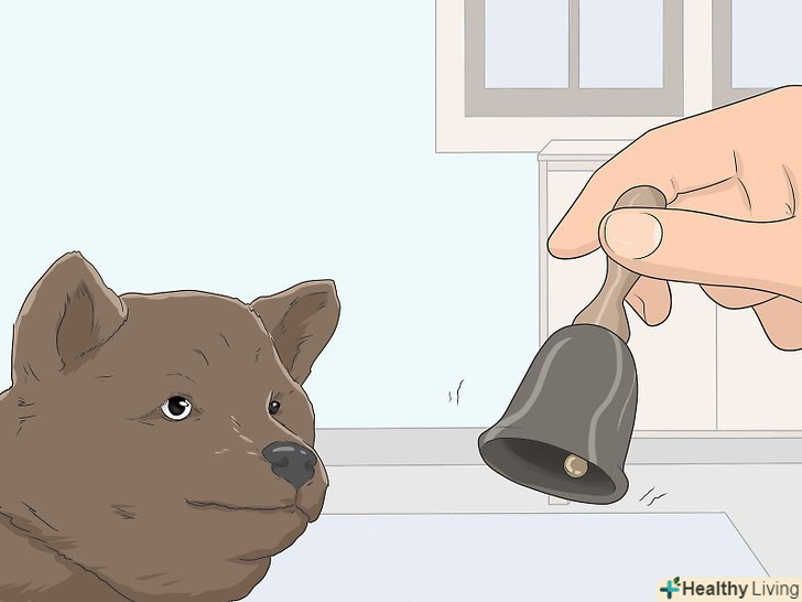 Для цієї мети також підійде дзвіночок. деякі господарі вважають за краще замість заохочення собаки ласощами дзвонити в дзвіночок. Коли собака піде на своє місце, зателефонуйте в дзвіночок або створіть будь-який інший приємний і мелодійний звук в якості винагороди. Собака буде чекати цього звуку, тому використовувати його можна тільки в цій ситуації.- Мінус такого методу в тому, що в якийсь момент ви перестанете використовувати дзвіночок, і собака може не відразу звикнути, що звуку більше немає.