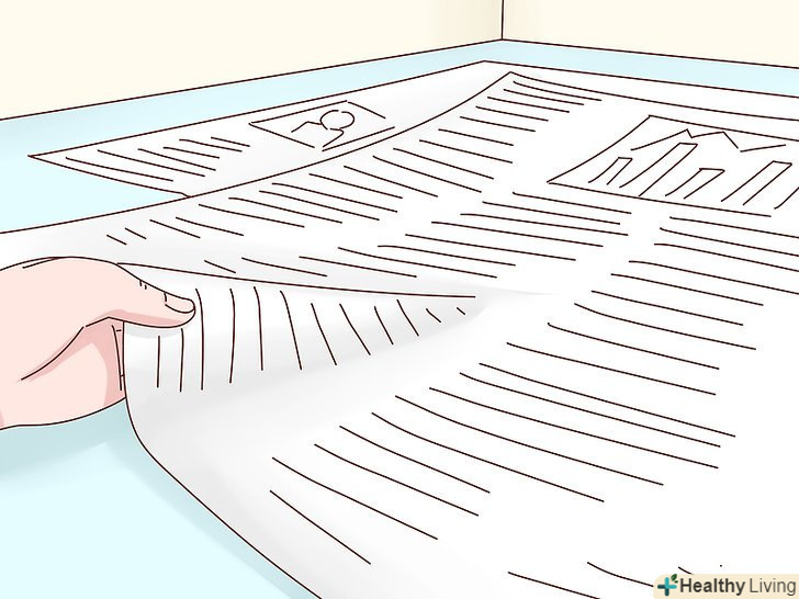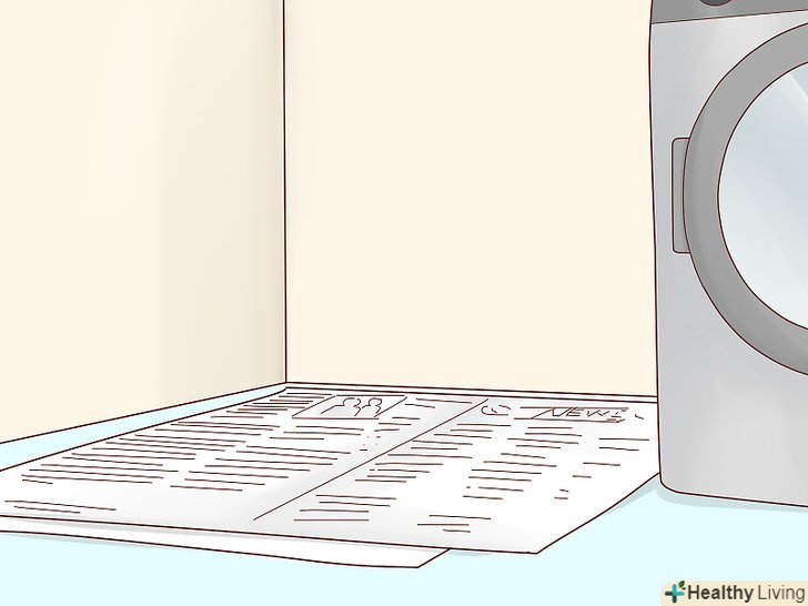Застеліть місце газетами або схожим матеріалом. газети дешеві, тому їх можна сміливо використовувати. Можна купити вбираючі килимки в зоомагазині. Виберете те, що вам більше подобається.- Можна використовувати спеціальний лоток для собак. Якщо ви хочете привчити собаку справляти нужду і на вулиці, і в лотку, насипте в лоток землі. Таким чином, собака буде знати, що справляти нужду потрібно на землі.
