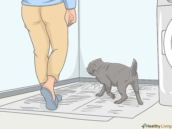 Регулярно замінюйте килимки, але завжди залишайте в цьому місці шматочок паперу, просоченої сечею. Запах допоможе собаці запам'ятати місце. Фекалії слід викидати відразу ж, а сечу залишати на невеликому шматочку паперу, замінивши всі інші, щоб собака знала, де справляти нужду.