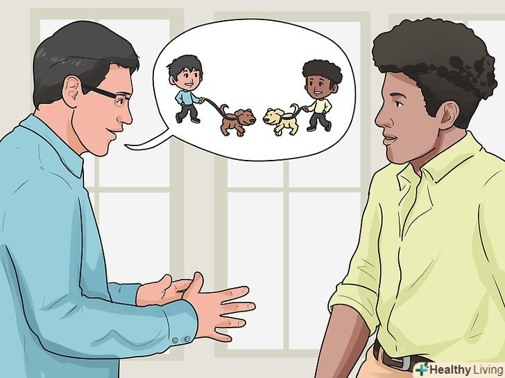 Зустрічайтеся з друзями і родичами, у яких теж є собаки. важливо регулярно влаштовувати такі зустрічі. [21] це дозволить вашій собаці поспілкуватися з іншими собаками, а ви зможете поговорити зі своїми друзями або родичами.