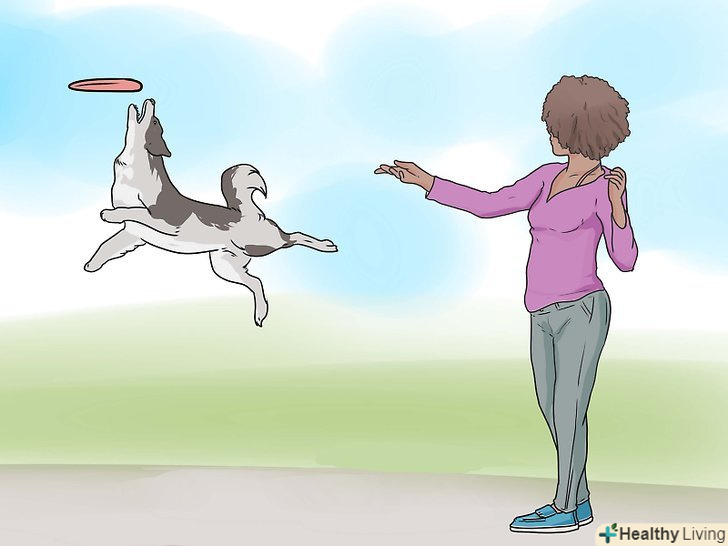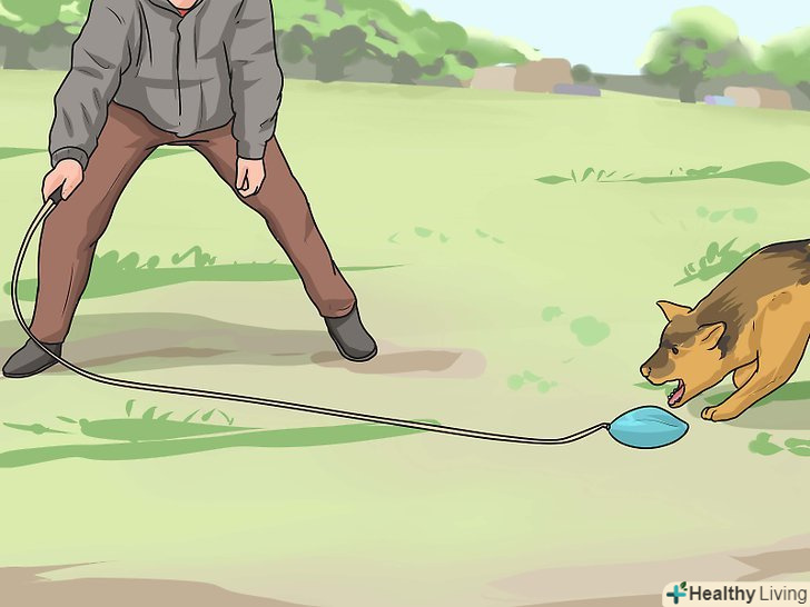 Грайте в догонялки. Прив'яжіть улюблену іграшку собаки до мотузки, розмахуйте іграшкою в повітрі і пропонуйте собаці зловити її. Можна купити спеціальні іграшки для цієї гри в зоомагазині. [12]