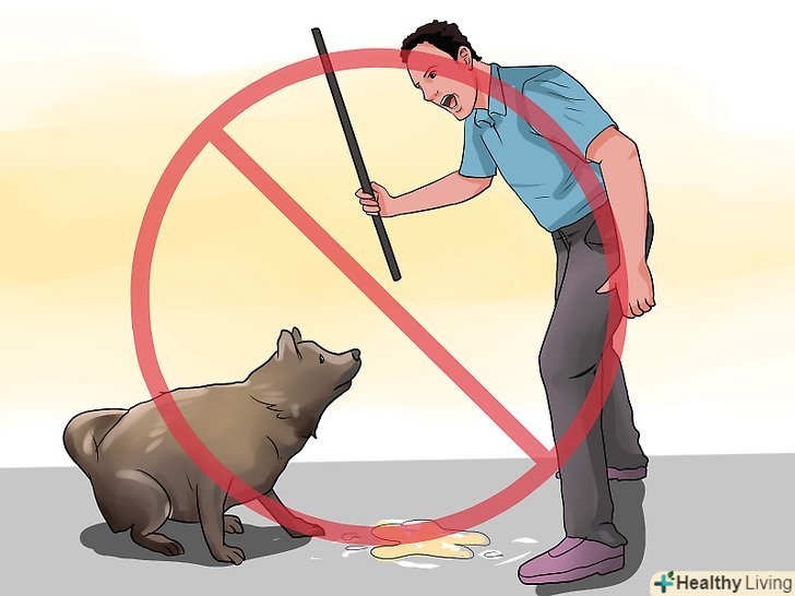 Не карайте собаку за випадкове справлення потреби. зрозумійте, що ваш вихованець цілком може випадково справити нужду в недозволеному місці навіть після того, як ви успішно привчили його до справляння потреби на вулиці. До того ж, такі «неприємні випадковості» цілком можуть виникнути в процесі навчання. Важливо пам'ятати той факт, що ваша собака не винна в цій випадковості, врешті-решт, вона навчиться себе контролювати. [22]- Не кричіть на собаку і не тикайте її мордою в калюжу або купку, якщо собака справила нужду не на вулиці. Зрозумійте, що це не допоможе собаці навчитися на своїх помилках, навпаки — це змусить її боятися вас. Спокійно приберіться і будьте терплячі зі своїм вихованцем. [23]