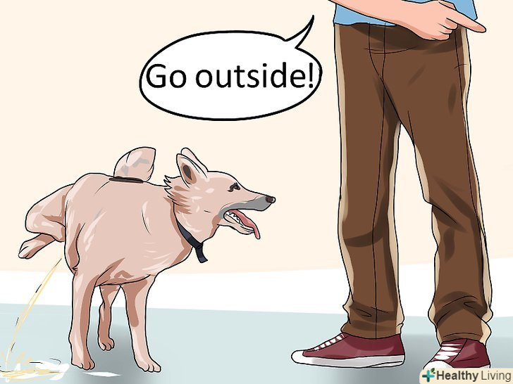 Якщо на ваших очах собака справляє нужду в недозволеному місці, варто її перервати. кожен раз, коли собака мочиться в будинку, можна створити якийсь шум (наприклад, грюкнути в долоні) і скомандувати: "на вулицю!"Потім виведіть собаку на вулицю і похваліть її, якщо вона закінчить там справлення потреби. [24]