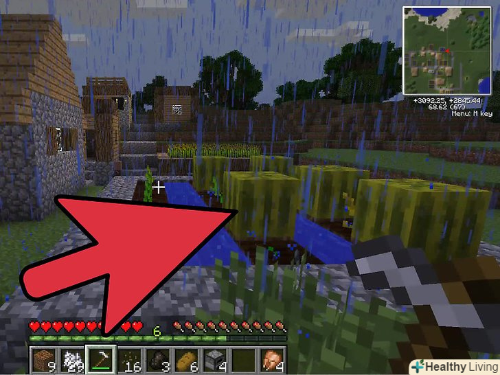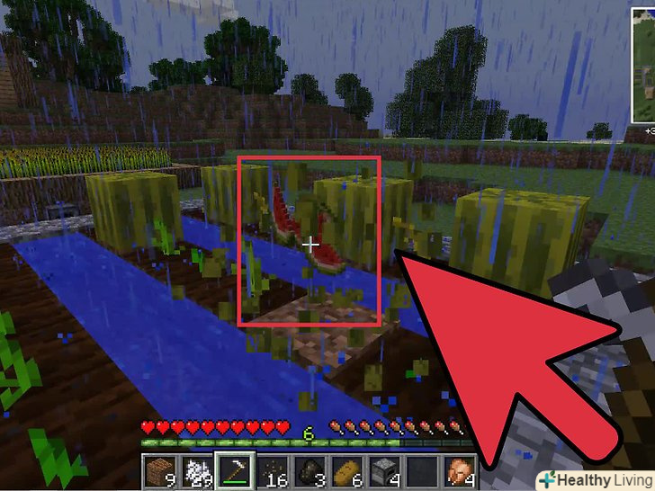 Коли у вас є зерна (принаймні одне), ви можете почати вирощувати гарбузи. Гарбузи ростуть на зораній землі біля води, їм потрібен чистий блок зверху і порожній блок поруч, щоб рости.