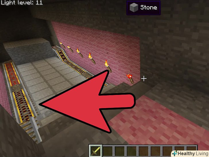 Знайдіть рейки, паркани, або факели, які ви не ставили.