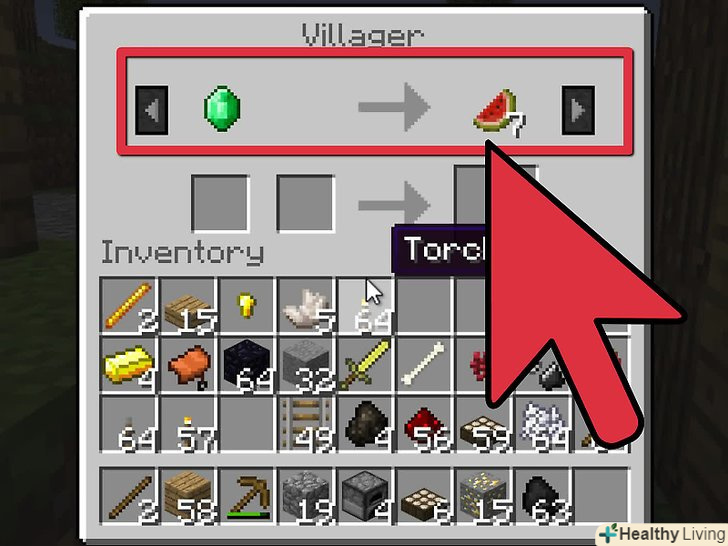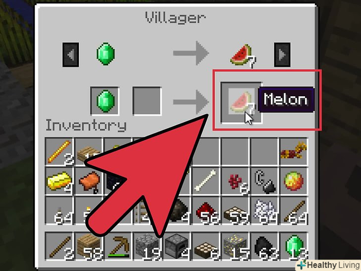 Якщо у фермера є скибочки гарбуза, перетягніть свій смарагд у вікно торгівлі, і візьміть собі скибочку гарбуза.