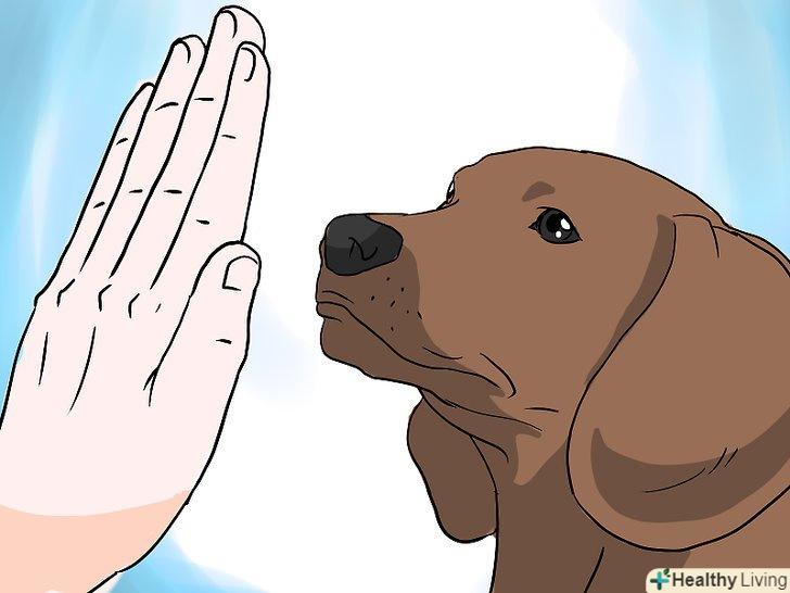Не карайте собаку за погану поведінку. якщо собака гавкає на дитину і нервує, не лайте і не карайте її. Киньте їй що-небудь смачненьке, на кілька кроків далі, а потім знову постарайтеся представити їй дитину. Це важливо, тому що потім собака буде пов'язувати присутність дитини і частування.- Розкажіть їй, як потрібно поводитися-замість того, щоб очікувати, що собака понюхає дитину і буде вести себе тихо, дайте їй знати, якої поведінки ви від неї очікуєте. Коли вона трохи нюхає дитину, дайте їй команду сидіти або стояти. Хваліть і винагороджуйте її за хорошу поведінку.