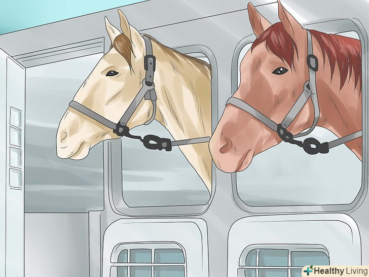 При необхідності, підготуйте другу коня для трейлера. водіння на великі відстані в трейлері може бути особливо напруженим для деяких коней. Замість того, щоб потрапити на ваше шоу з наляканим, схвильованим конем, допоможіть мінімізувати їх тривогу, взявши іншу коня для поїздки. Вони будуть набагато спокійнішими по прибуттю, на відміну, якби вона їхала одна.