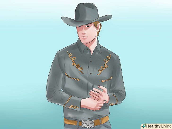 Одяг для уроків дикого Заходу. на західних змаганнях, таких як західні радості або Західна їзда, завжди одягайте одяг, який виділяє вашу коня і поєднується з вашим сідлом. Це додасть більше стилю до вашого загального вигляду. Для локального шоу, одягніть сорочку в стилі Вестерн, хороші штани, чоботи і ремінь ці речі можуть бути дуже ДО РЕЧІ. Однак, для більш конкурентоспроможних шоу, всі будуть одягнені в більш складні костюми, такі, як шовк і жилети, дорогих хлопців, і т. д.- Якщо ваш бюджет не дозволить вам зробити ці покупки, то вам нема про що турбуватися поки ваш наряд доповнює себе, а також вашу коня.
