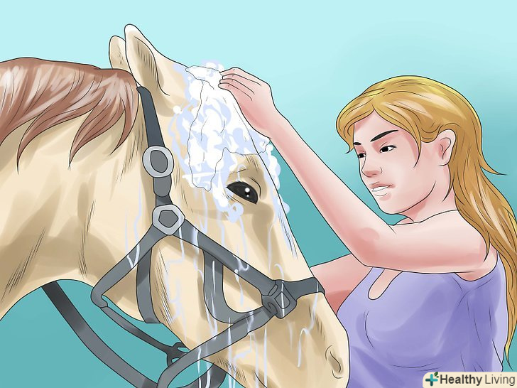 Завершальний догляд. не купайте вашу коня, але очистити її буде добре, щоб зробити шерсть блискучою. Проводьте найбільше часу, використовуючи гребінець, і переконайтеся, що чисті всі частини тіла. Витратьте додатковий час на білі області і застосуйте більше кукурудзяного крохмалю або тальку ще раз, в разі необхідності.