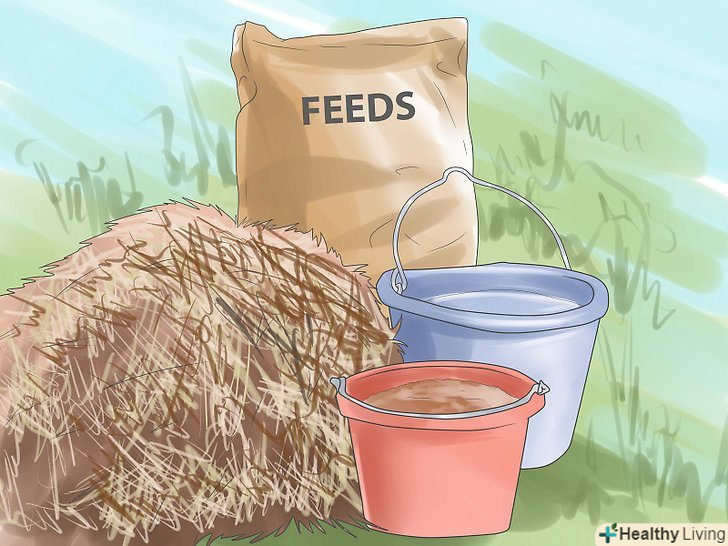 Приготуйте всі продукти харчування і воду для вашої коні. тому що шоу часто стресова подія для коней (з усіма іншими кіньми і людьми), важливо, намагатися зберегти звичайний графік подачі їжі. Отримайте їх регулярне харчування і, принаймні, два відра з водою. Коли прийде день шоу, спробуйте годувати їх в той же час, як ви це зазвичай робите вдома.
