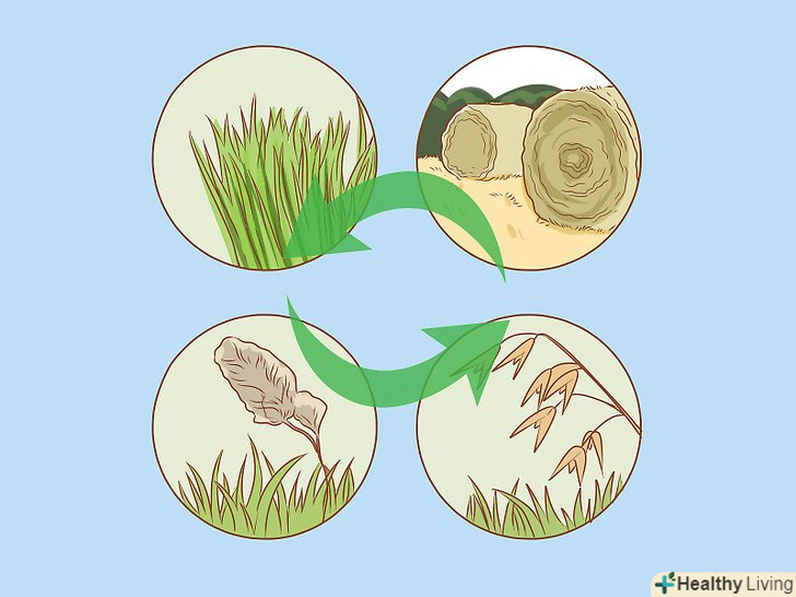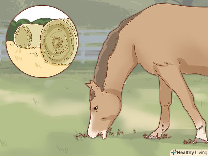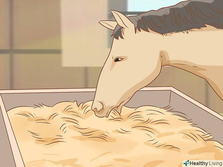 Забезпечте коня достатньою кількістю структурованих вуглеводів. структуровані вуглеводи, такі як сіно та трава, складають значну частину дієти коня. [3] Коні вживають сіно і траву у великій кількості, так як вони є їх основними джерелами корму. Насправді, коні з'їдають близько 7-9 кілограм (або 1-2% від власної ваги) сіна щодня, тому зробіть так, щоб у коня воно завжди було в достатній кількості. [4]- Переконайтеся в тому, що дається коні сіно не містить цвілі і пилу. [5]