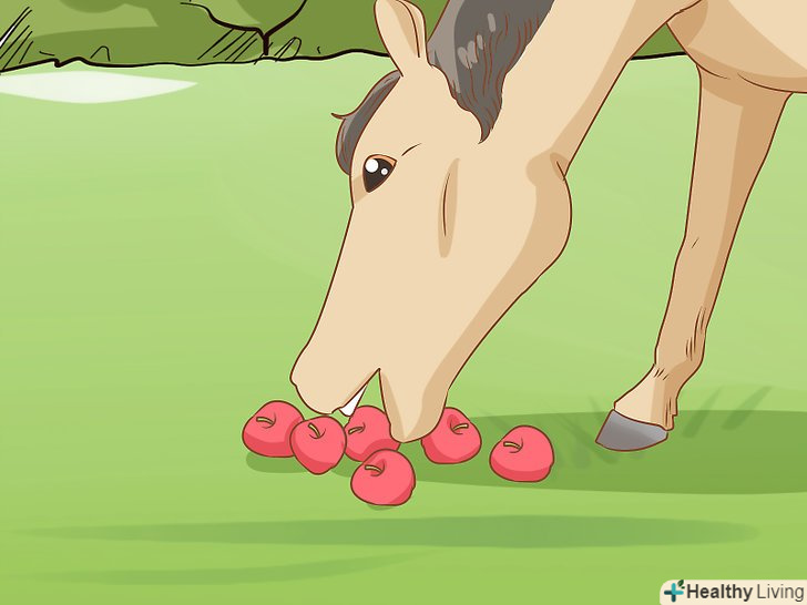Давайте коні частування в помірних кількостях. надання коні частувань для її заохочення є відмінним способом зміцнення зв'язку з нею. Тільки не слід зловживати частуваннями, інакше кінь стане вимагати їх і може навіть почати оглядати ваш одяг в пошуках частувань. [10]- Відмінними частуваннями для вашого коня будуть яблука, морква, зелений горошок, шкірка кавуна і селера. [11]