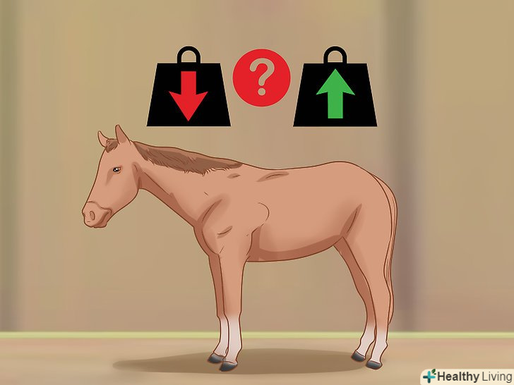 Виміряйте вагу коня за допомогоюСпеціальної вагової стрічки або платформних ваг (призначених для зважування коней). платформні ваги дають набагато більш точний результат і при наявності можливості повинні використовуватися замість вагової вимірювальної стрічки. Оцінку стану (вгодованості) коня найкраще проводити за допомогою запису динаміки її ваги. Зважуйте коня кожні два тижні і відображайте зміни на графіку.