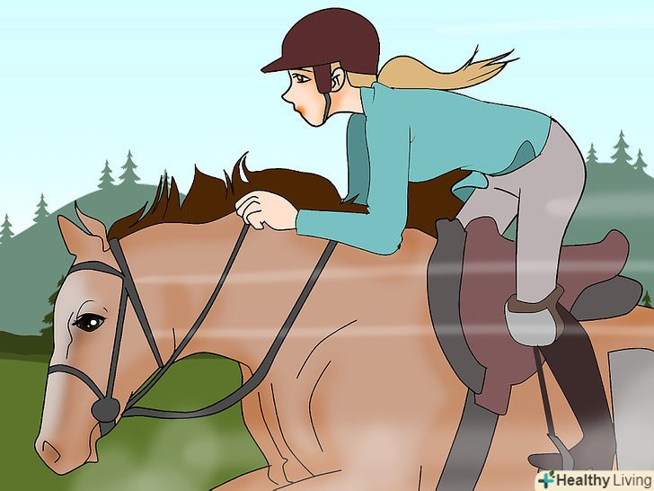Навчіться триматися за гриву (або купіть шийний ремінь), не відпускаючи поводи і залишатися в двоточкової або стрибкової позі при всіх трьох видах ходи коня, щоб не пошкодити їй спину або рот (наявність шийного ременя запобіжить це). Вам також необхідно навчитися керувати конем.
