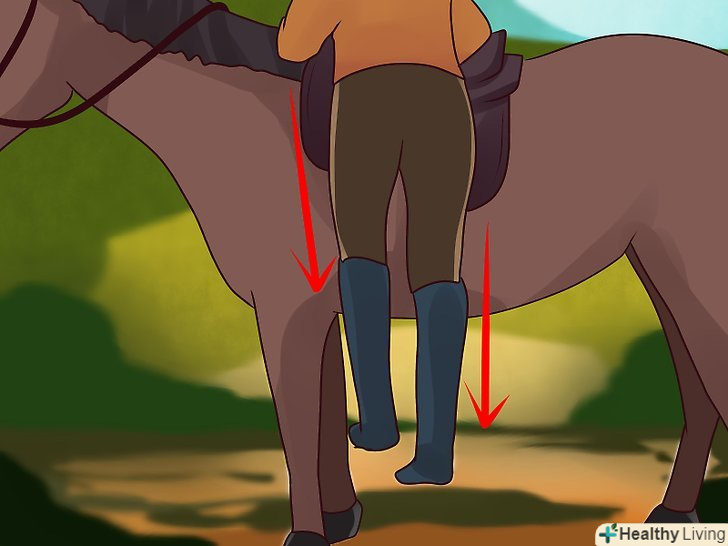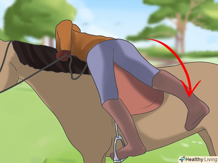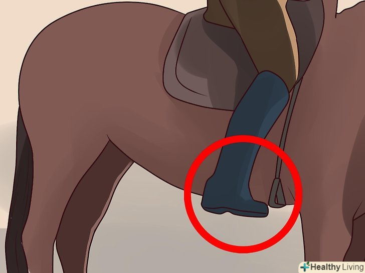 - Можна використовувати ліву ногу в стремені для балансу, але не штовхайте назовні, коли повертаєтеся. Це може потягнути коня, і вона почне рухатися.