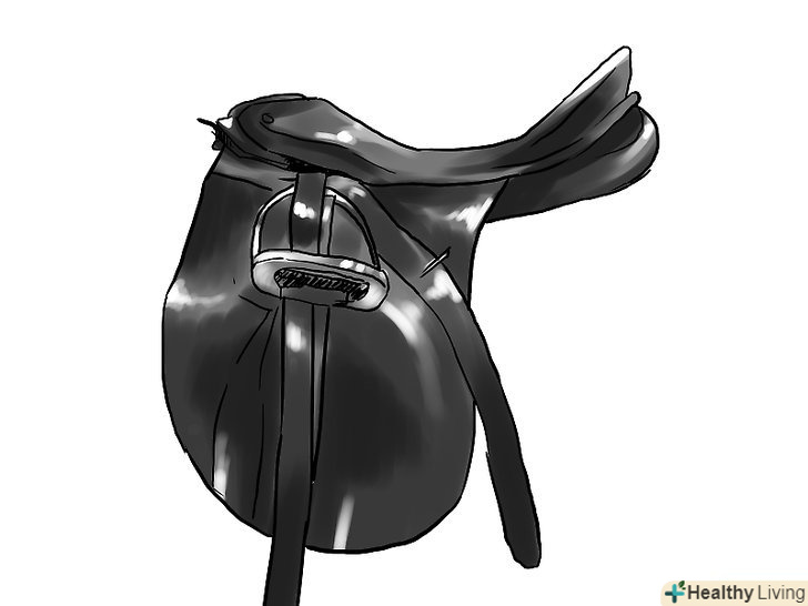Перейдіть до використання сідла. виберіть легковаге англійське сідло, щоб почати навчання коні безпосередньому ходінню під сідлом. Воно буде менш лякаючим і важким для не звиклої спини. Дозвольте коні побачити і понюхати сідло, а потім повільно опустіть їй його на спину. Акуратно встановіть його і стежте за реакцією коня. Потім ви можете затягнути підпругу і пройтися з конем.- Потім зніміть сідло, потім повторіть процес. Одягайте сідло на коня з обох сторін, щоб вона звикла до того, що ви ходите навколо з ним.