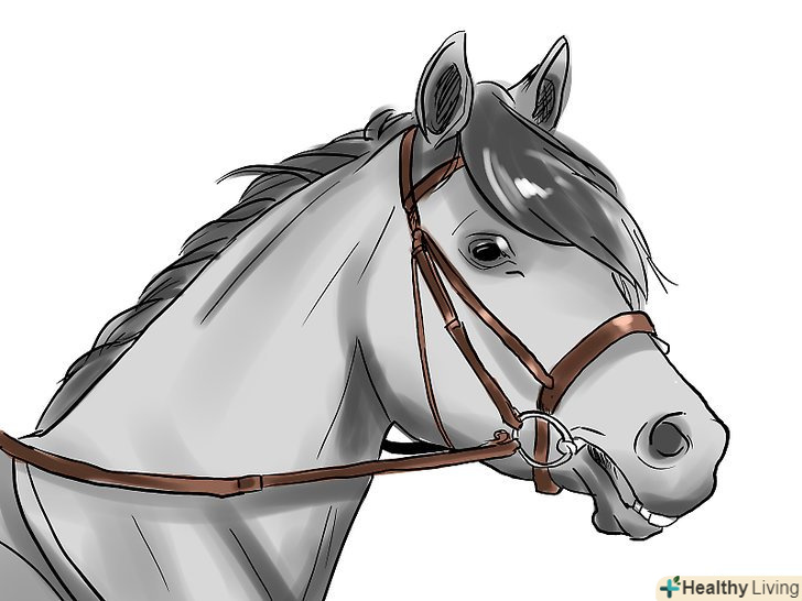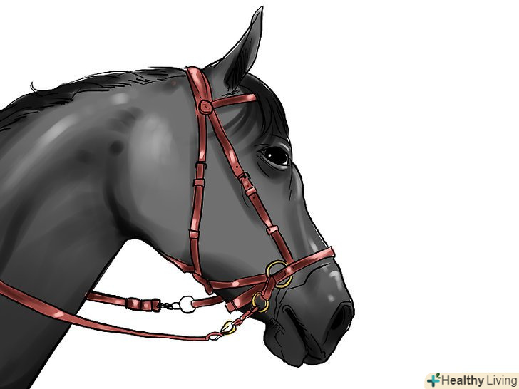 Надіньте безмундштучну вуздечку. ніколи не стрибайте відразу до використання мундштучної вуздечки, замість цього скористайтеся безмундштучною вуздечкою, щоб кінь звикла до того, що на її морду одягають щось відмінне від недоуздка. Для початку вуздечку можна одягнути поверх недоуздка, або зробити вуздечку єдиною одягненою на коня річчю. Пройдіться з одягненою в Вуздечку конем, якщо у вас також надітий недоуздок, ви можете поводити її на поводі з одягненою вуздечкою.
