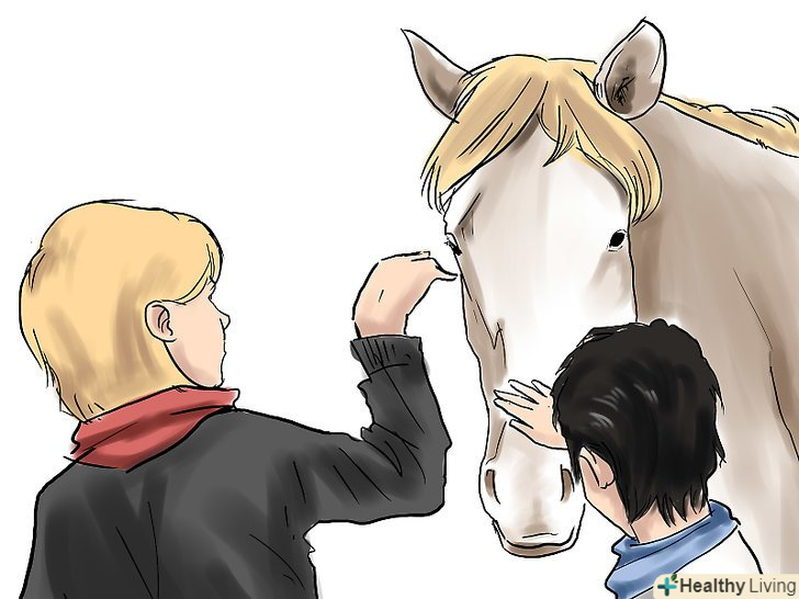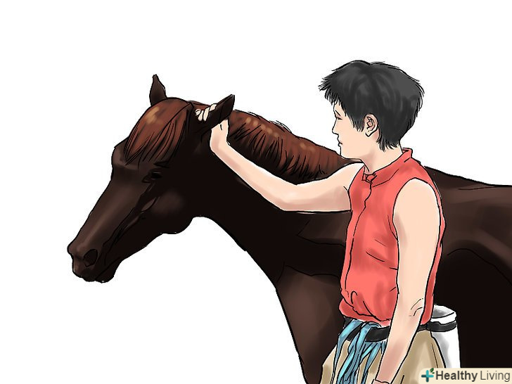 - Продовжуйте процес, поки кінь совеем не перестане реагувати на ваші дотики до будь-якої частини морди навіть без попередніх дотиків до тіла або шиї. [2]
