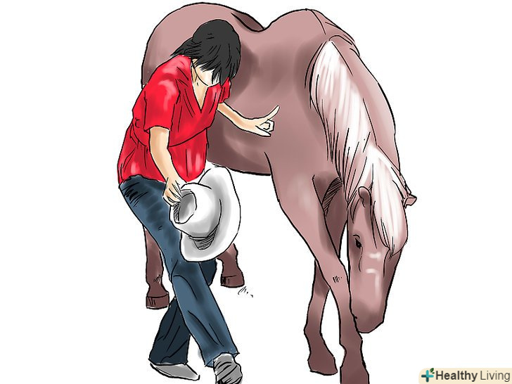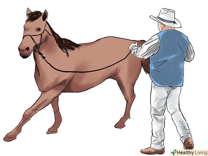 - Як тільки кінь почне відчувати себе комфортно при всіх ваших рухах, зіпріться про її спину животом. Ви готуєте коня до верхової їзди, додаючи вагове навантаження, але так, щоб не лякати її. [7]