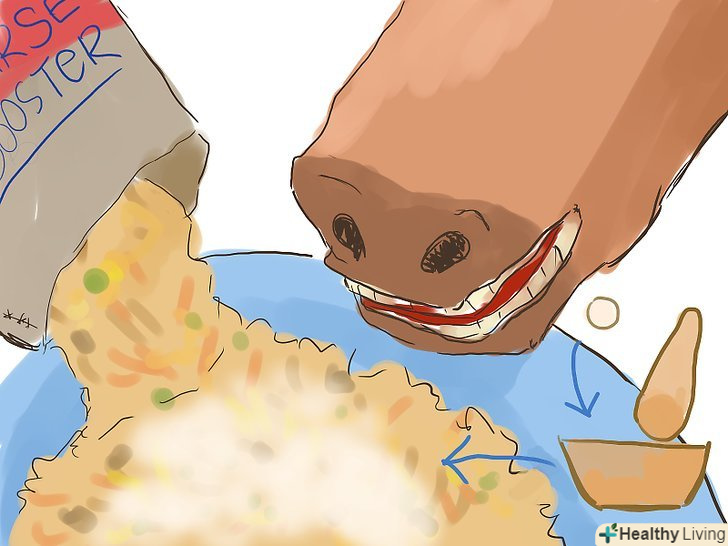 - Годуйте свою коня до її фізичних вправ. Після того, як Ви забезпечите їй щотижневий відпочинок, то можете відновлювати тренування. За тридцять хвилин до тренування варто дати коні невелику кількість сіна люцерни або 500 грам плевел люцерни. Люцерна створить лужний шар, який блокуватиме виплеск кислоти у верхній відділ шлунка.