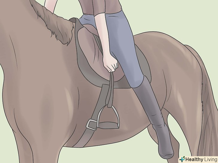 Відрегулюйте стремена (припускаючи, що ви не їздите верхи без сідла). у вас повинна бути можливість встати на стремена і прибрати сідло. Це може здатися нелогічним, але чим коротше стремена, тим безпечніше ваша позиція, і це не дає вашому п'ятах прірву вниз.