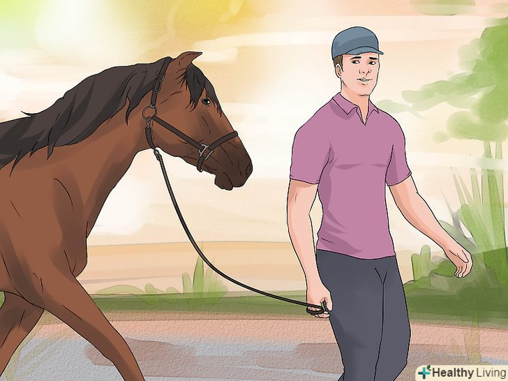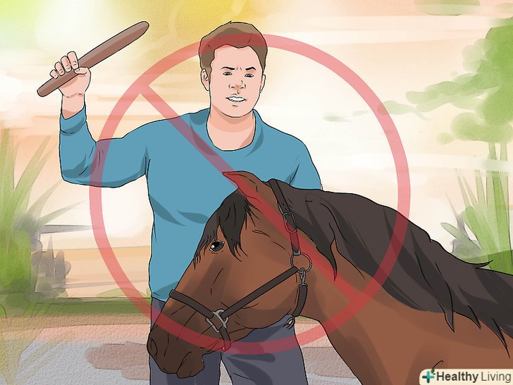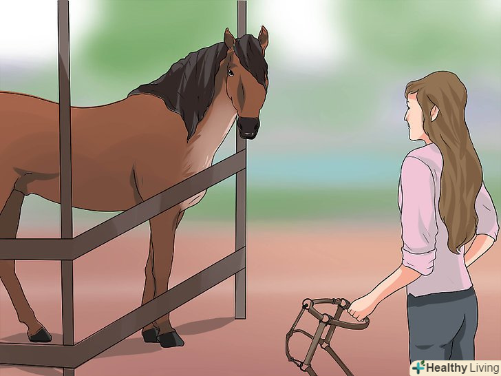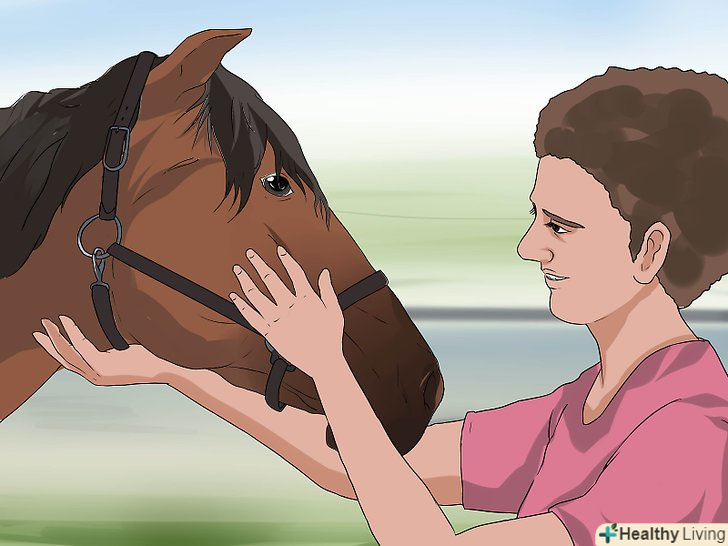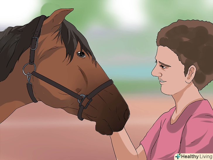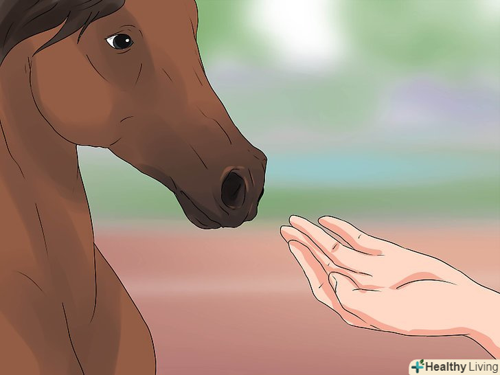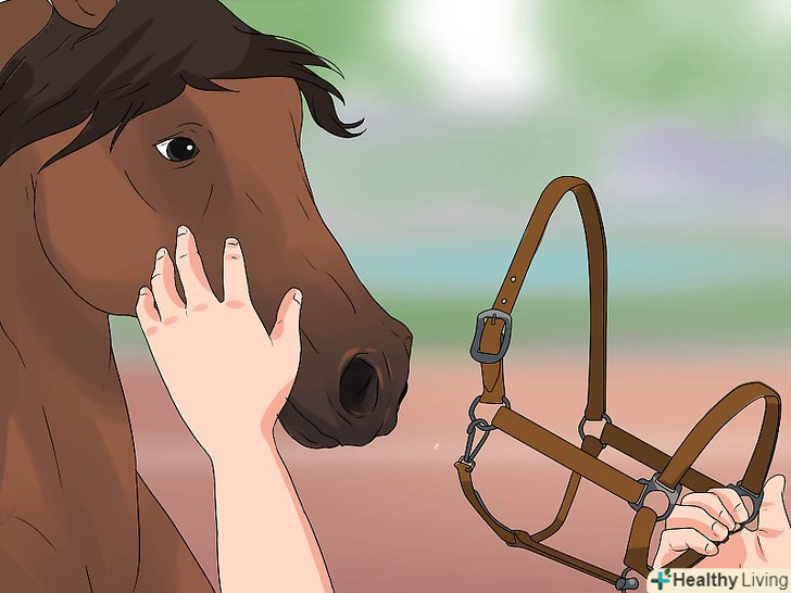 - Кожне заняття з конем має закінчуватися на позитивній ноті. Навіть якщо вам вдалося натягнути недоуздок всього лише на ніс коня, це теж досягнення. Якщо ви відчуваєте, що кінь починає нервувати і відчувати дискомфорт, зупиніться. [24]