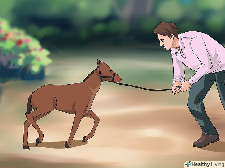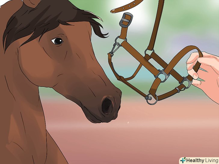 - Щодня надягайте і знімайте недоуздок, поки лоша росте. Так він почне сприймати цей аксесуар як абсолютно буденну річ. Пізніше він буде спокійніше ставитися до надягання недоуздка в дорослому віці. [14]