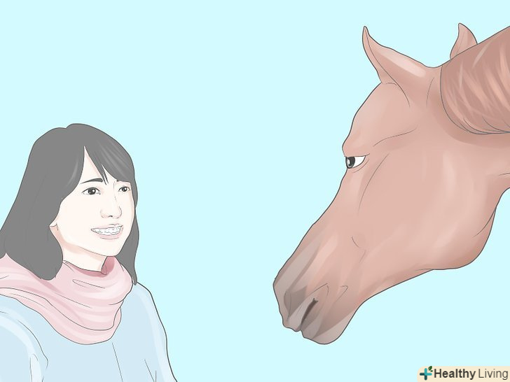 - Якщо Кінь намагається нюхати вас або ткнутися в вас губами, не відштовхуйте її. Таким способом вона висловлює свою прихильність, тому тварина засмутиться, якщо ви не приймете ці знаки. Витягніть руку і дайте тварині нюхати її; привчивши коня до свого запаху, ви також зміцните контакт між вами.