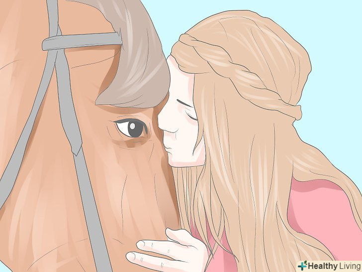 Витратьте трохи часу, щоб налагодити фізичний контакт з твариною. запустіть долоню в гриву коня, подуйте їй в ніздрі, демонструючи свою любов. Можете також ласкаво поговорити з твариною, запропонувати йому ласощі.- Висловлюйте свої почуття так, щоб кінь розуміла вас. Ви можете спантеличити тварина, якщо візьметеся обіймати і цілувати його. Але якщо ви просто потрете плече коня, погладите її по загривку кінчиками своїх пальців (але не нігтями), вона зрозуміє, що Ви висловлюєте свою приязнь, адже саме так тварини спілкуються один з одним в стаді.