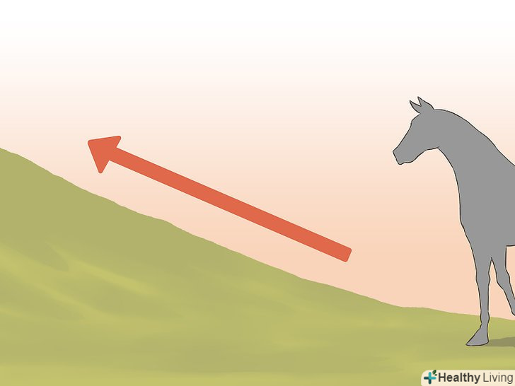 Почніть прогулюватися і бігати риссю по пагорбах. пробіжка вгору і вниз по пагорбах особливо ефективна для нарощування сідничних м'язів коня. Майте на увазі, що по пагорбах тварина може бігти в більш повільному темпі.- Не варто їздити по пагорбах зі слизьким грунтом або іншим небезпечним нестійким покриттям.
